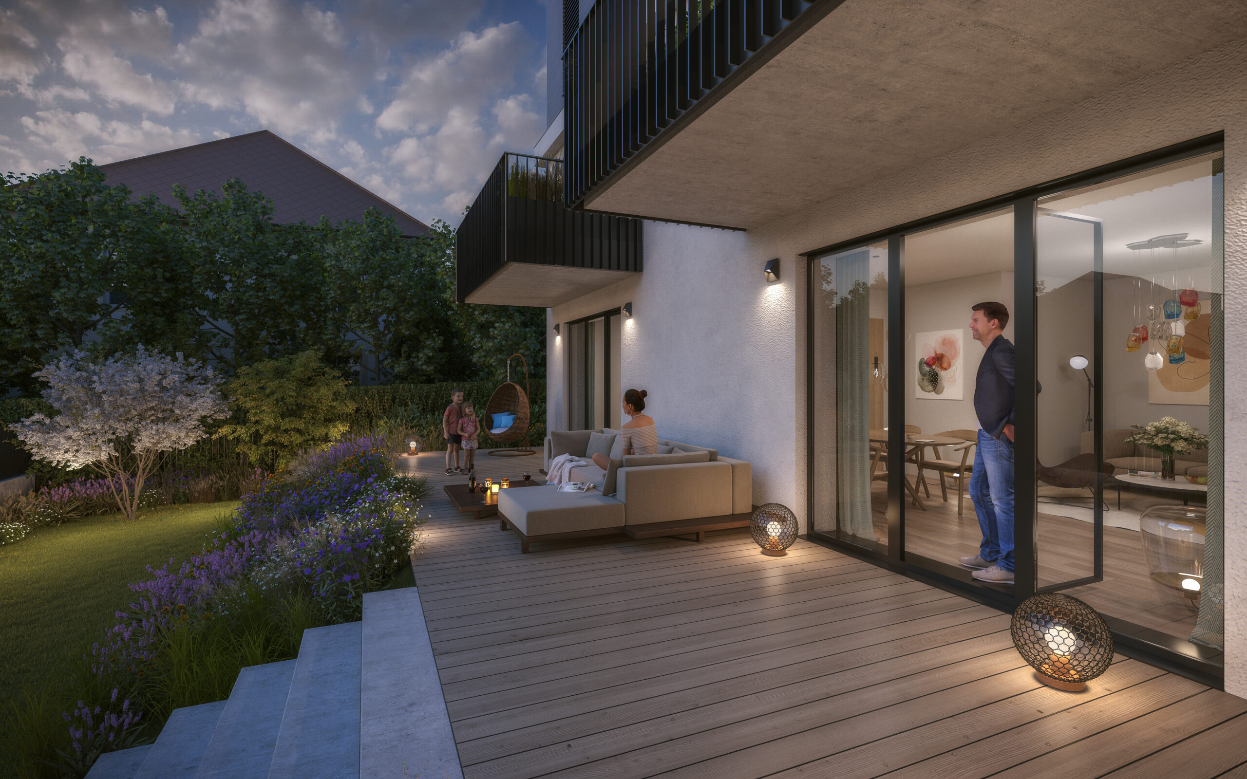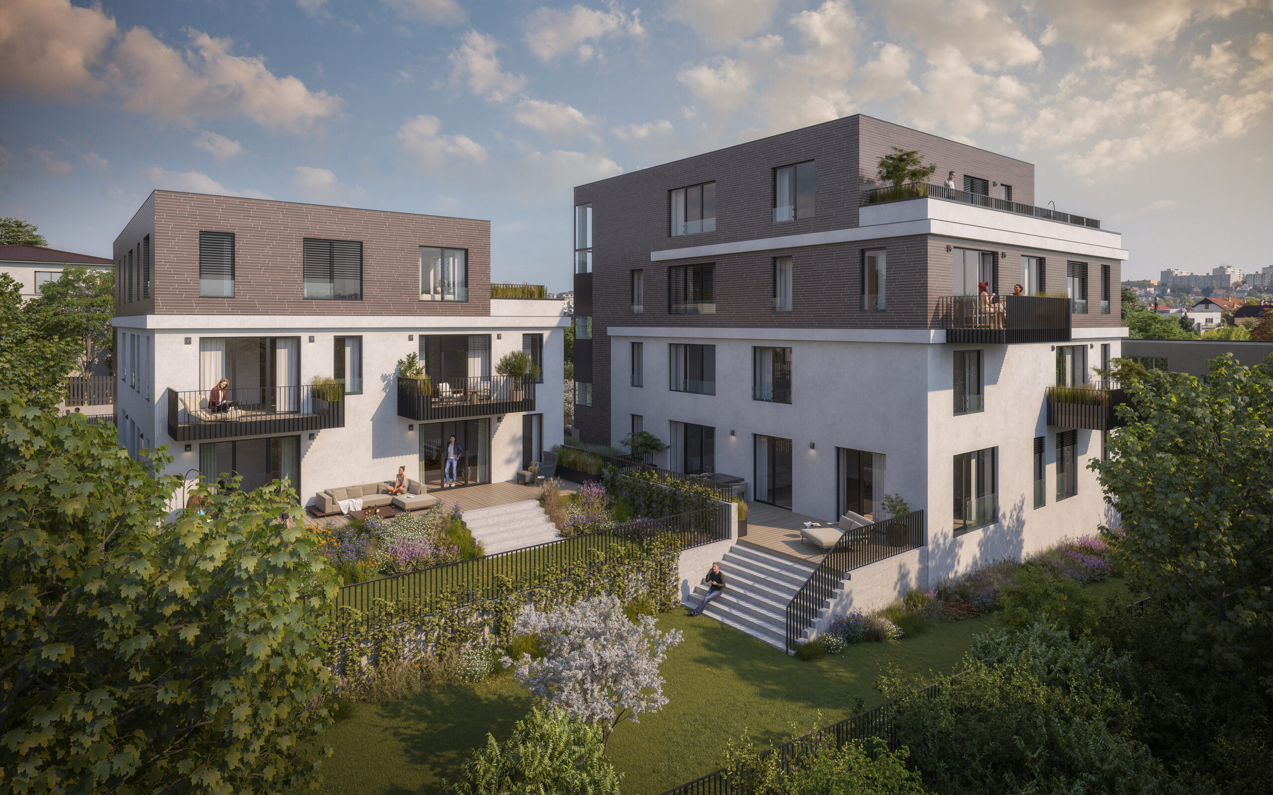 Byty budou vybaveny kvalitními koncovými prvky a materiály. Interiéry byly ve spolupráci s renomovaným architektonickým studiem LOXIA navrženy s ohledem na maximální soukromí, prostor a dostatek úložného místa. Ke každé bytové jednotce náleží prostorná terasa, zahrada nebo balkon. Parkování a sklepy budou zajištěny v podzemním podlaží.