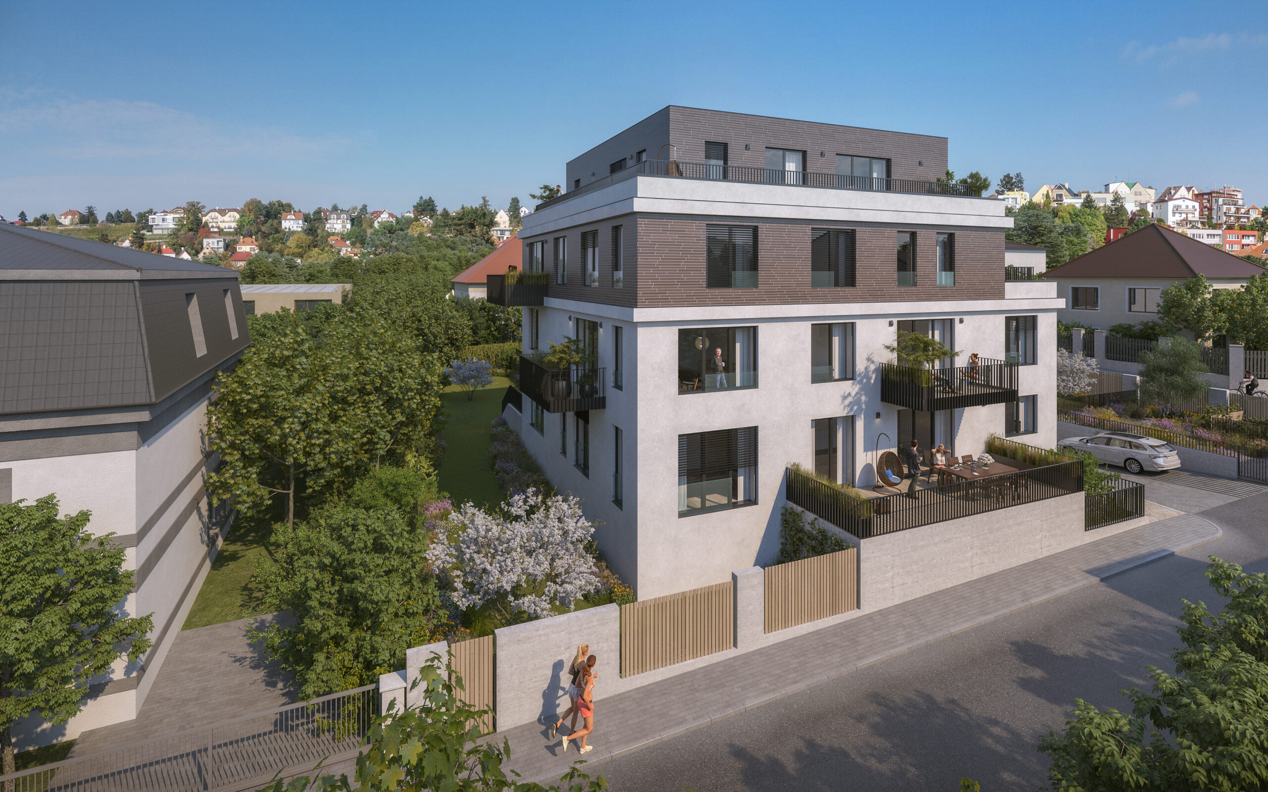 Nová komorní rezidence s 12 bytovými jednotkami o dispozici 3+kk a 4+kk právě vzniká v příjemné vilové čtvrti tradiční městské části pražských Modřan. Našim společným cílem s architekty bylo vytvořit unikátní bydlení, které nabídne kvalitní dispoziční řešení všech 12 bytů, maximální soukromí a bezpečnost.Zahájení veřejného prodeje je naplánováno na 2. polovinu tohoto roku. Do té doby je možné nás kontaktovat a sjednat si individuální schůzku, kde Vás budeme o projektu podrobněji informovat a případně si dle dohody evidujeme Váš zájem.